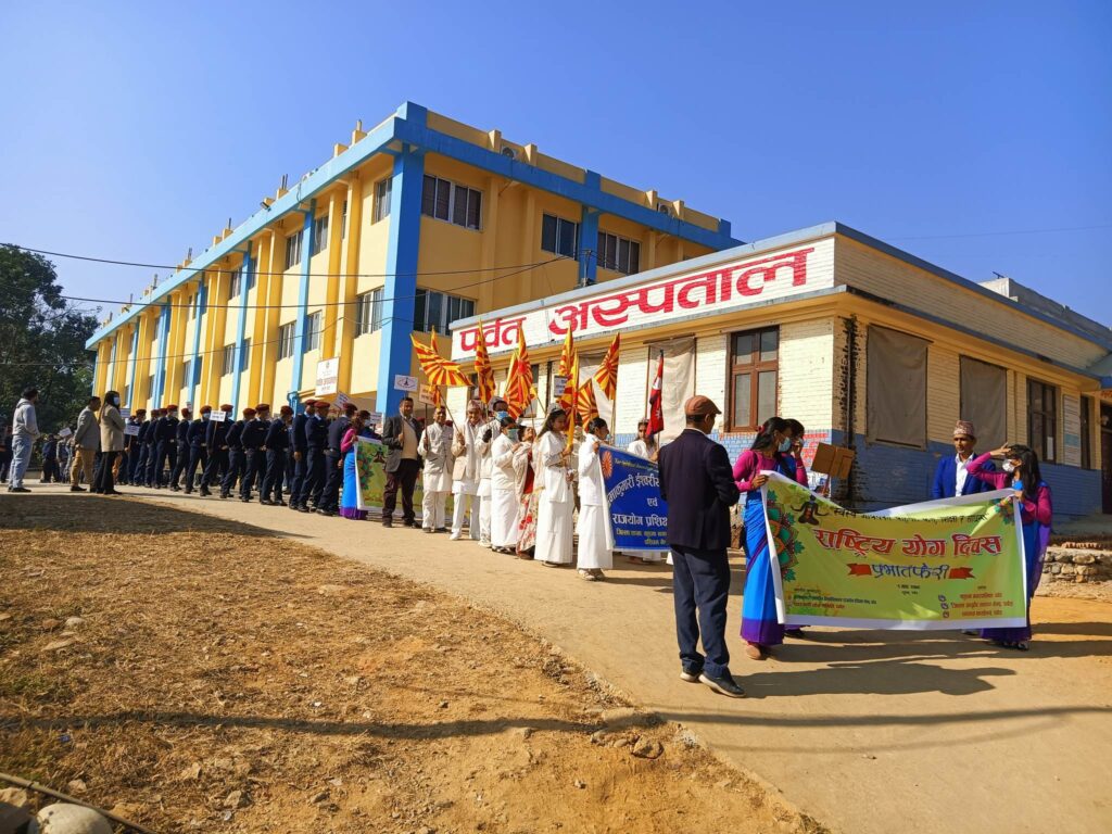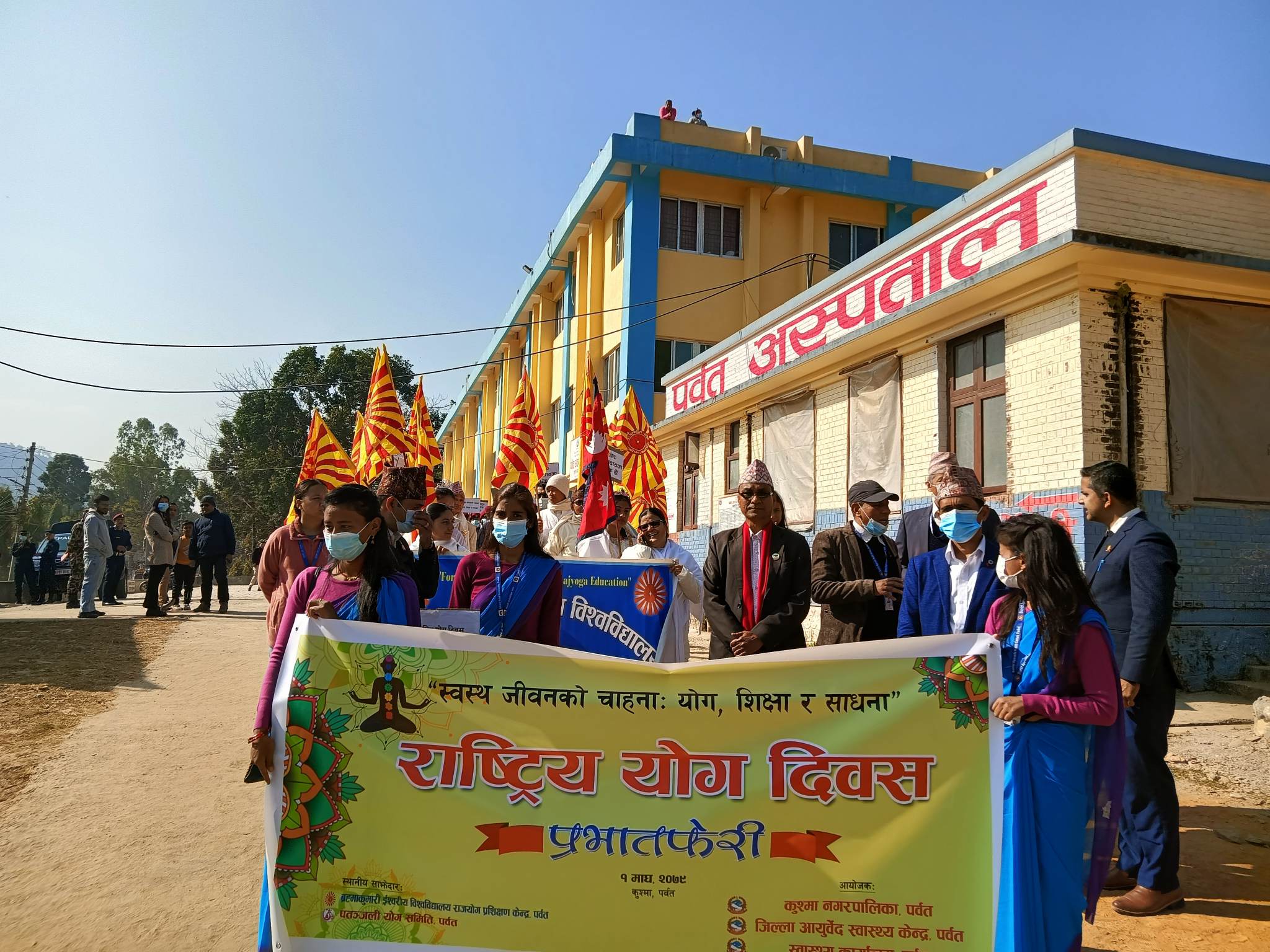 पर्वत । राष्ट्रिय योग दिवसको अवसरमा पर्वतमा प्रभातफेरी कार्याक्रमको आयोजना गरिएको छ । “स्वस्थ्य जीवन चाहाना योग शिक्षा र साधना” भन्ने मुल नाराका साथ प्रभातफेरी कार्यक्रम तथा योग प्रशिक्षण कार्यक्रम सम्पन्न गरिएको हो ।