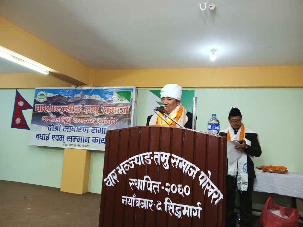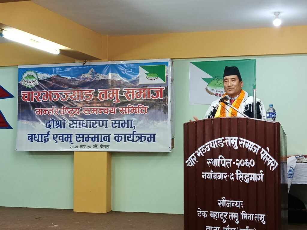 चार भञ्ज्याङ तमु समाज अन्र्तराष्ट्रिय समन्वय समितिका अध्यक्ष ले चन्द्रबहादुर गुरुङको अध्यक्षतामा भएको कार्यक्रममा स्वागत उपाध्यक्ष हुमबहादुर गुरुङ र संचालन महासचिव डिवी गुरुङले गर्नुभएको थियो।