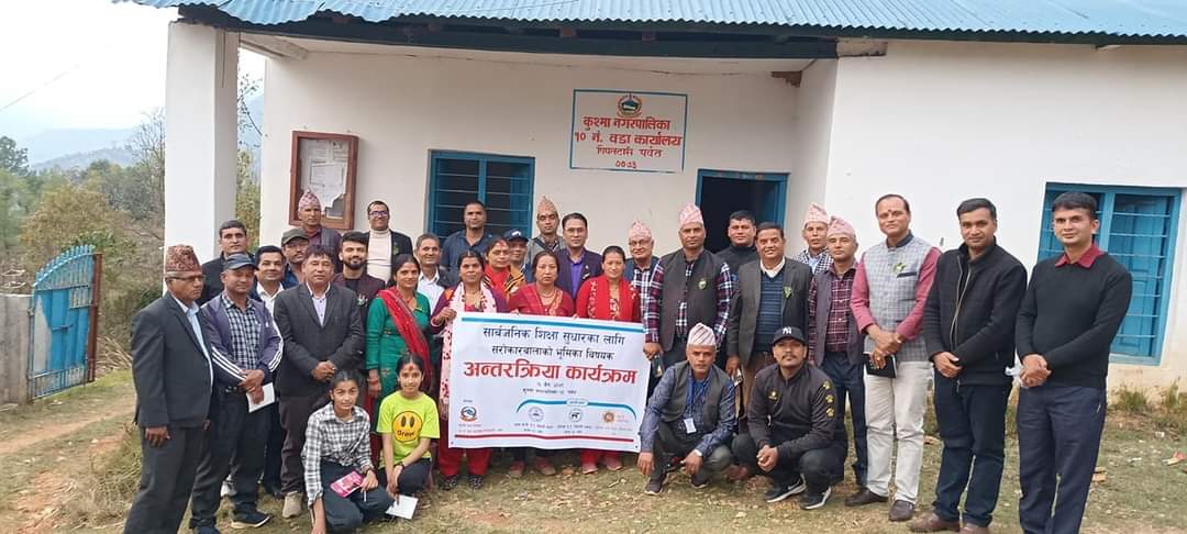 पर्वत । शैक्षिक सुधारका लागि पर्वतको कुश्मा १० पिपलटारीमा अन्तरक्रिया कार्यक्रम सम्पन्न भएको छ । सार्वजनिक शिक्षा कमजोर भएको जनगुनासो वढ्न थालेपाछी पूर्णेश्वर भूपू समाजको पहलमा अन्तरक्रिया कार्यक्रम अयोजना गरिएको हो ।