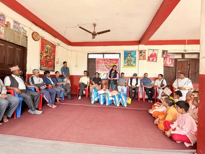 राष्ट्रिय युवा संघ स्थापना दिवसको अवसरमा संस्कृत पाठशालामा खाद्यान्न वितरण