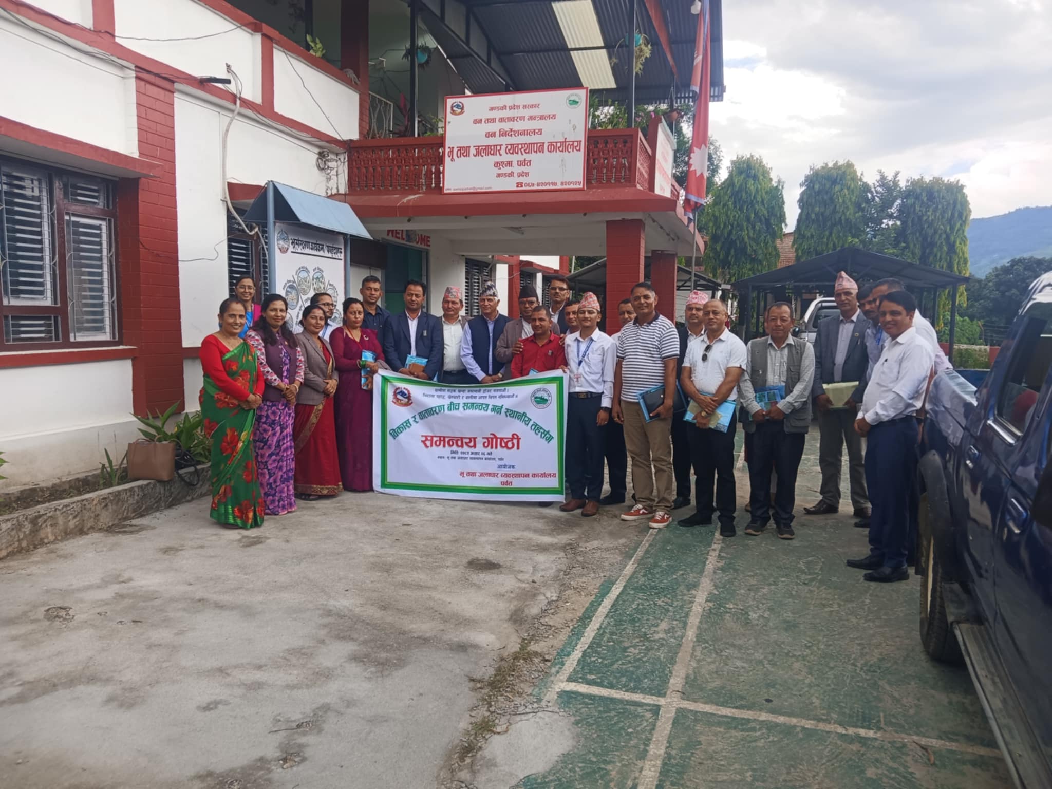 भु तथा जलधार व्यवस्थापन कार्यालय पर्वतले आज एक समन्वय गोष्टीको आयोजना गरि छलफल गरेको हो ।