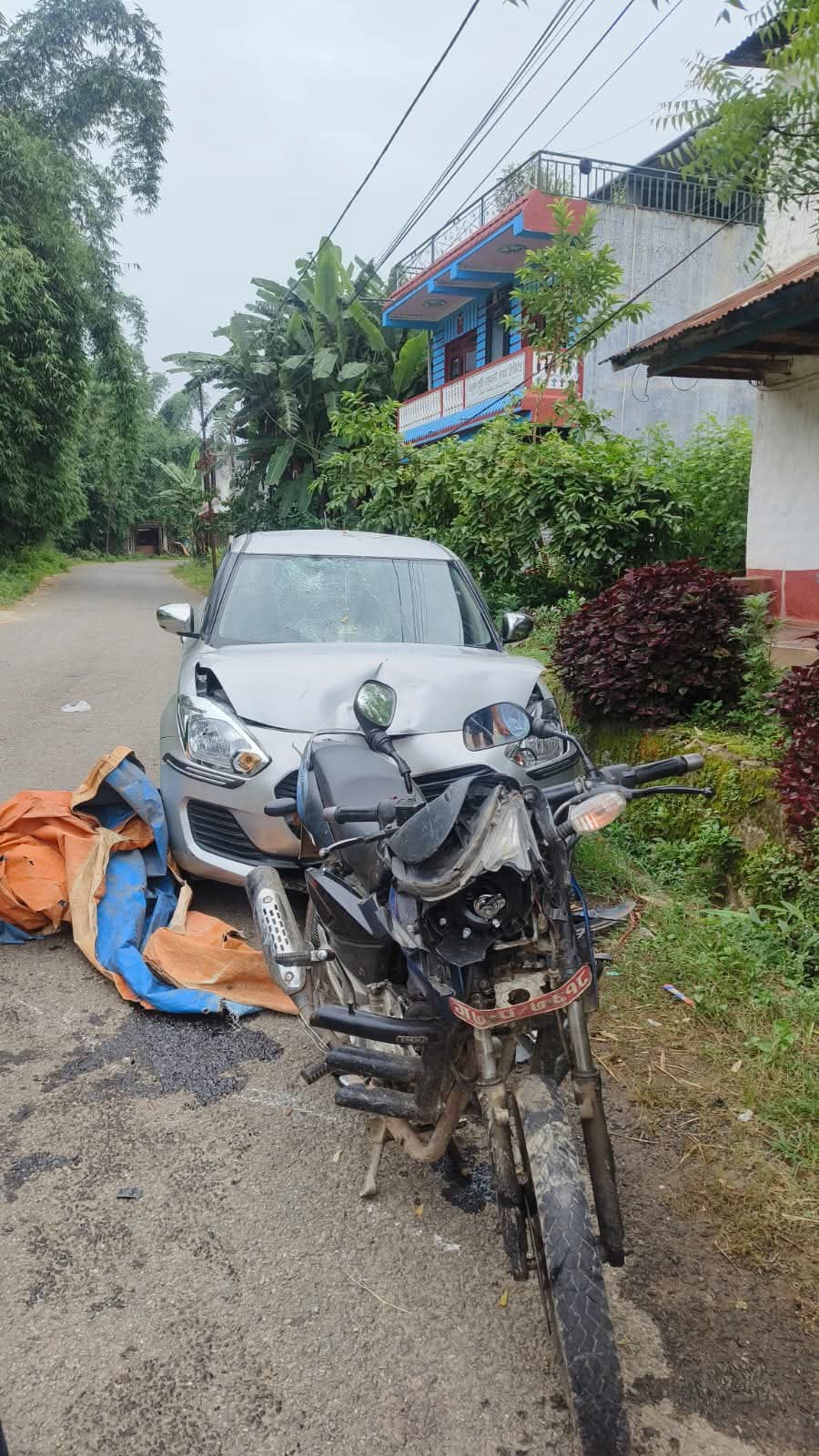 देविस्थानका कुशल पौडेलले आफ्नो घर नजिकै पार्किङ गरि राखेको ग ३ च ३६६२ नम्बरको कारमा बिपरित दिसाबाट आएको ग ७ प ७६१८ नम्बरको मोटरसाइकल ठक्कर खाँदा दुर्घटना भएको राम पौडेलले जानकारी दिनुभयो।