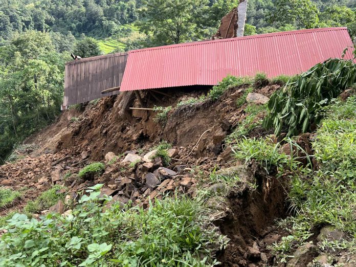 पर्वतको ठानामौला खाल्टेमा पहिरोले आठ घर गोठ भत्किए, १० घर उच्च जोखिममा
